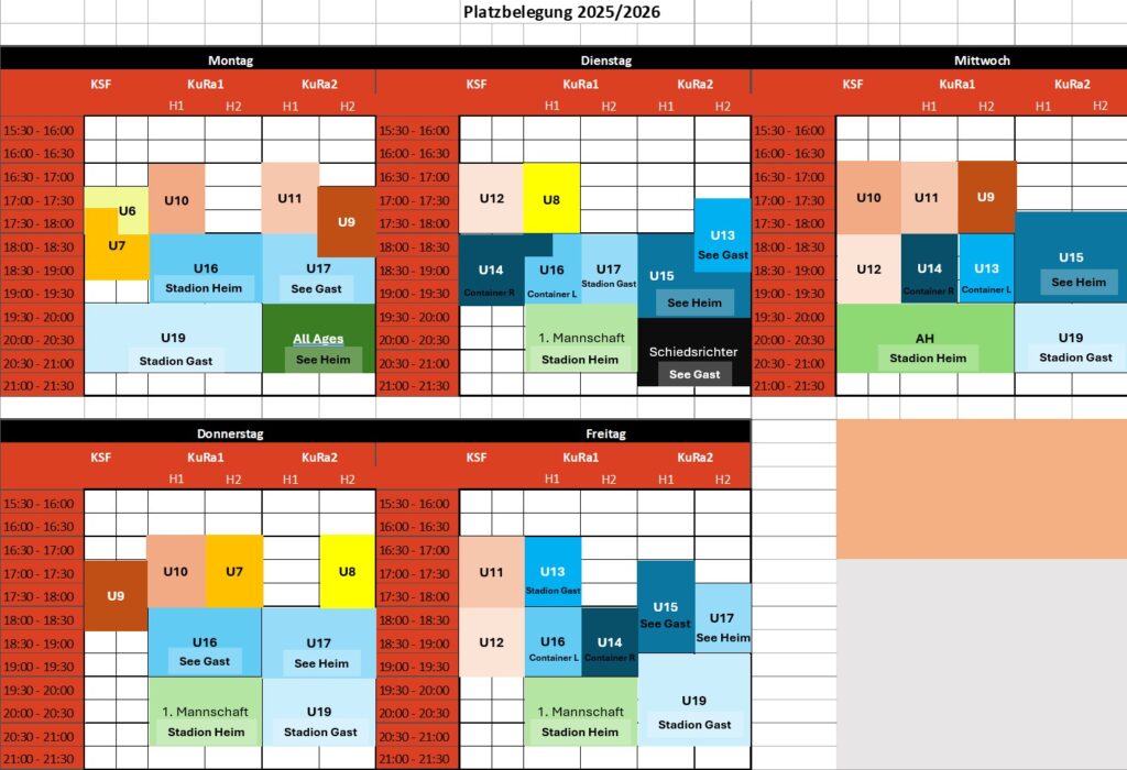 Platzbelegung 2025/2026 inklusive Kabinenbelegung